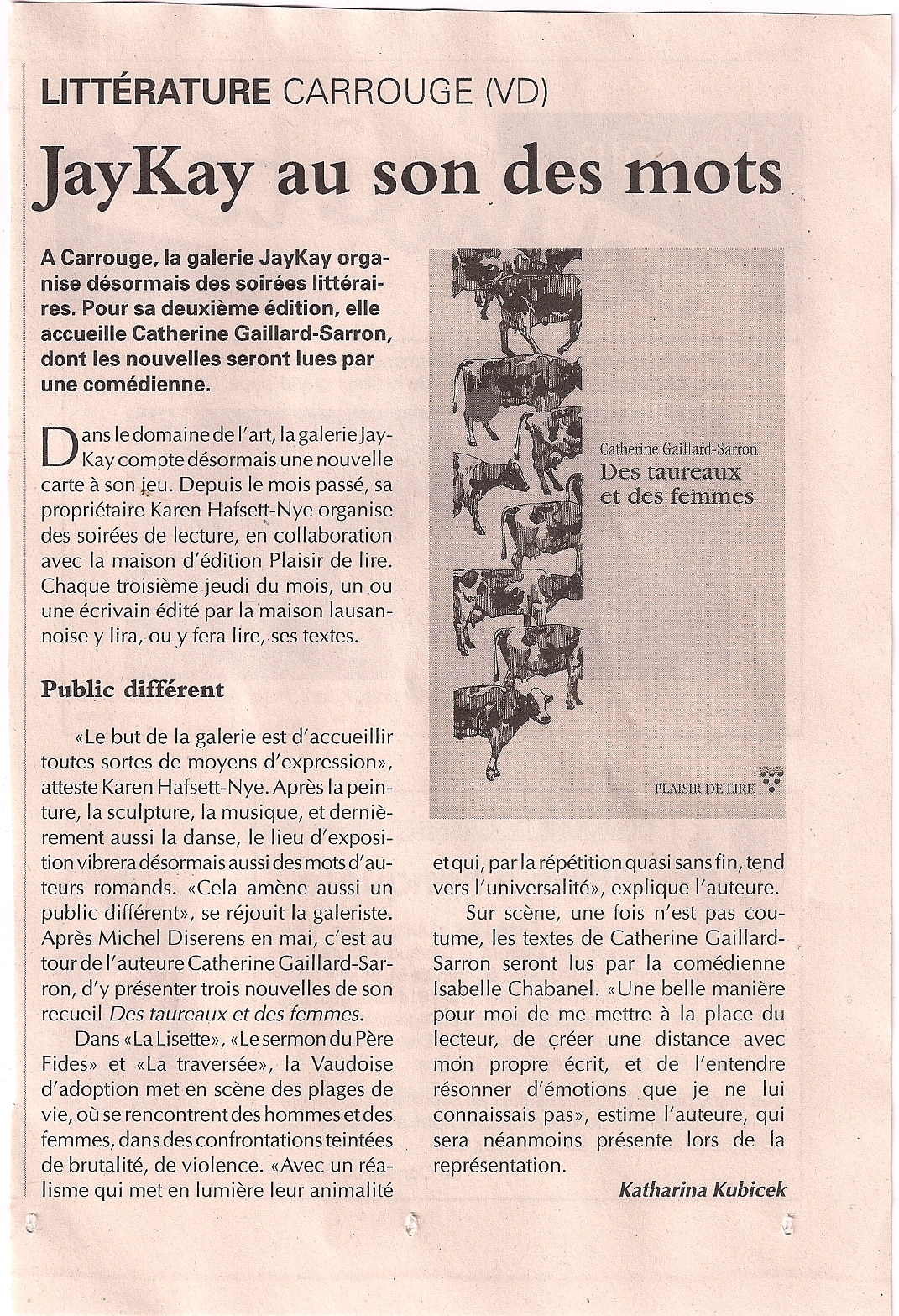essager du 10 juin 2011, quelques mots sur la soirée lecture de demain, jeudi 16 juin à 20h30 (détails dans l’article précédent), animée par Catherine Gaillard-Sarron. Cliquez deux fois sur l’article pour le lire…