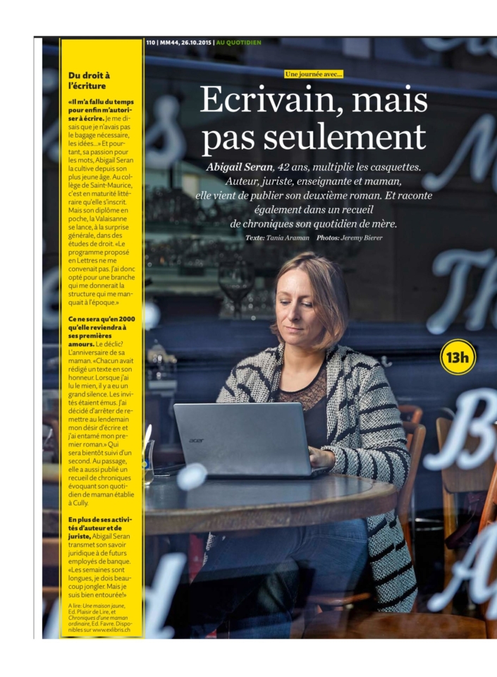 Voici un article paru dans le quotidien fribourgeois La Liberté du 26 octobre 2015, au sujet de la rentrée littéraire d’Abigail Seran, qui a été riche de deux livres: Chroniques d’une maman ordinaire aux Editions Favre et Une Maison Jaune chez Plaisir de Lire. Cliquez sur l’article pour l’agrandir… Nous vous rappelons aussi qu’Abigail Seran sera […]