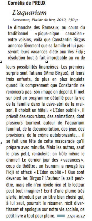 Revue des médias pour L‘Aquarium: