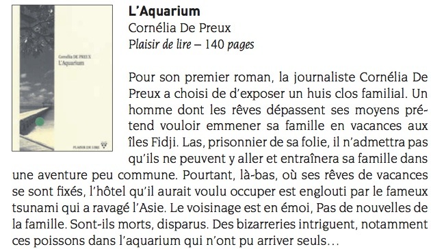 La couverture de "L'Aquarium" de Cornélia de Preux.Roman