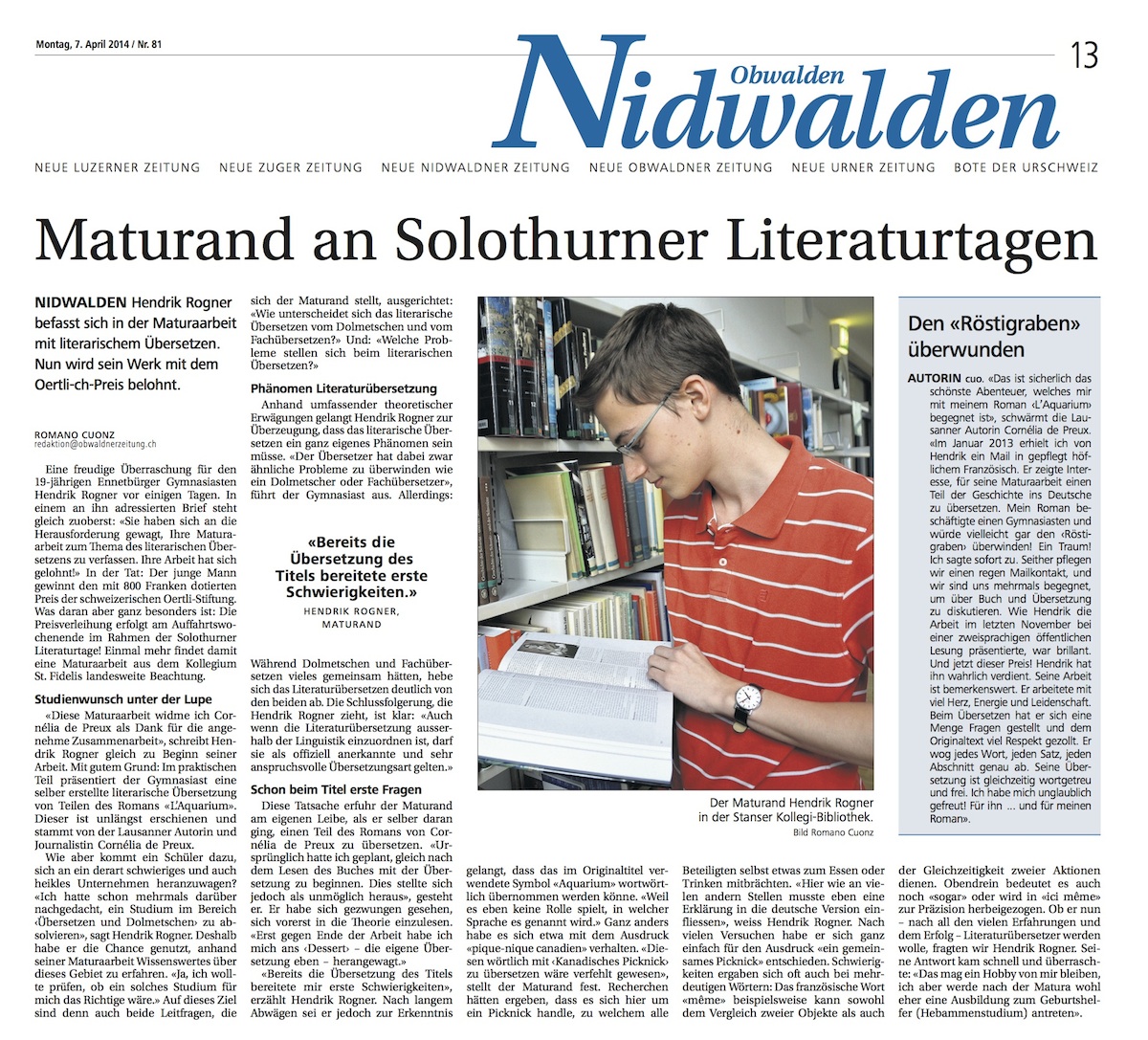 • Neue Nidwaldner Zeitung, 7 avril 2014: