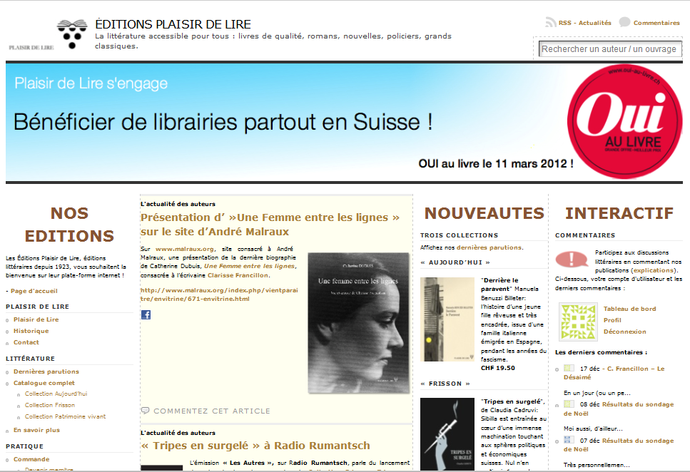 Mission: En collaboration avec d’autres personnes, informer, par le biais d’articles sur le blog, des nouvelles parutions, évènements, lancements, articles de presses ou internet autour de notre maison d’édition (2 à 3 fois par semaine). Création de pages concernant les nouveautés parues ou les nouveaux auteurs publiés (environ 6 fois par an), mise à jour des diverses pages du site en fonction des changements (occasionnel). Alimenter notre page facebook. Développer si possible la présence de Plaisir de Lire sur les réseaux sociaux.