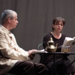 Les deux lecteurs sont Catherine Grand et Guy Delafontaine, et le musicien Olivier Forel.