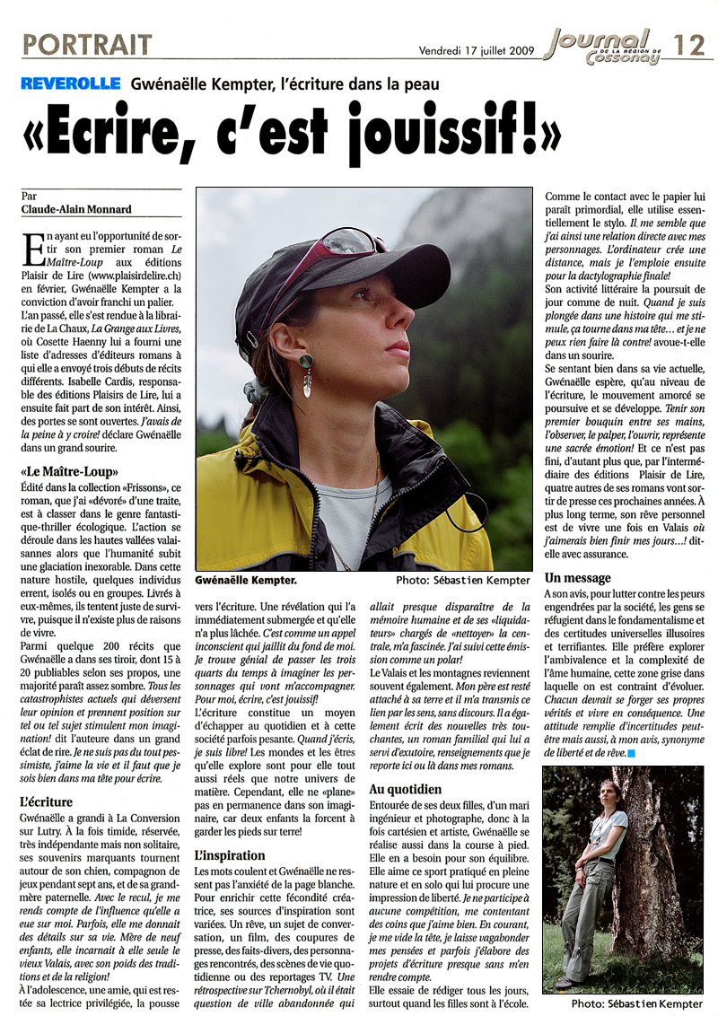 Valaisanne de cœur et de sang, Gwénaëlle Kempter est née en 1974 à Lausanne. Ses récits se déroulent souvent dans les hautes vallées valaisannes ou dans une nature sauvage qui révèle l’homme à lui-même.