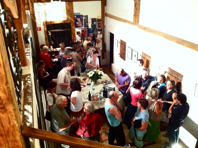 Plus de 80 personnes se pressaient jeudi 25 août à la JayKay Gallery de Carrouge (VD) pour assister au vernissage de La Source des Conflits, le dernier recueil de nouvelles de Catherine Cherix Favre (La foire aux sentiments 2009). A cette occasion, plusieurs nouvelles piquantes et pleines d’humour furent déclamées avec beaucoup de talent par Nicolas Favre (à qui on doit également des intermèdes musicaux tout à fait étonnants) et Catherine Cherix Favre elle-même.