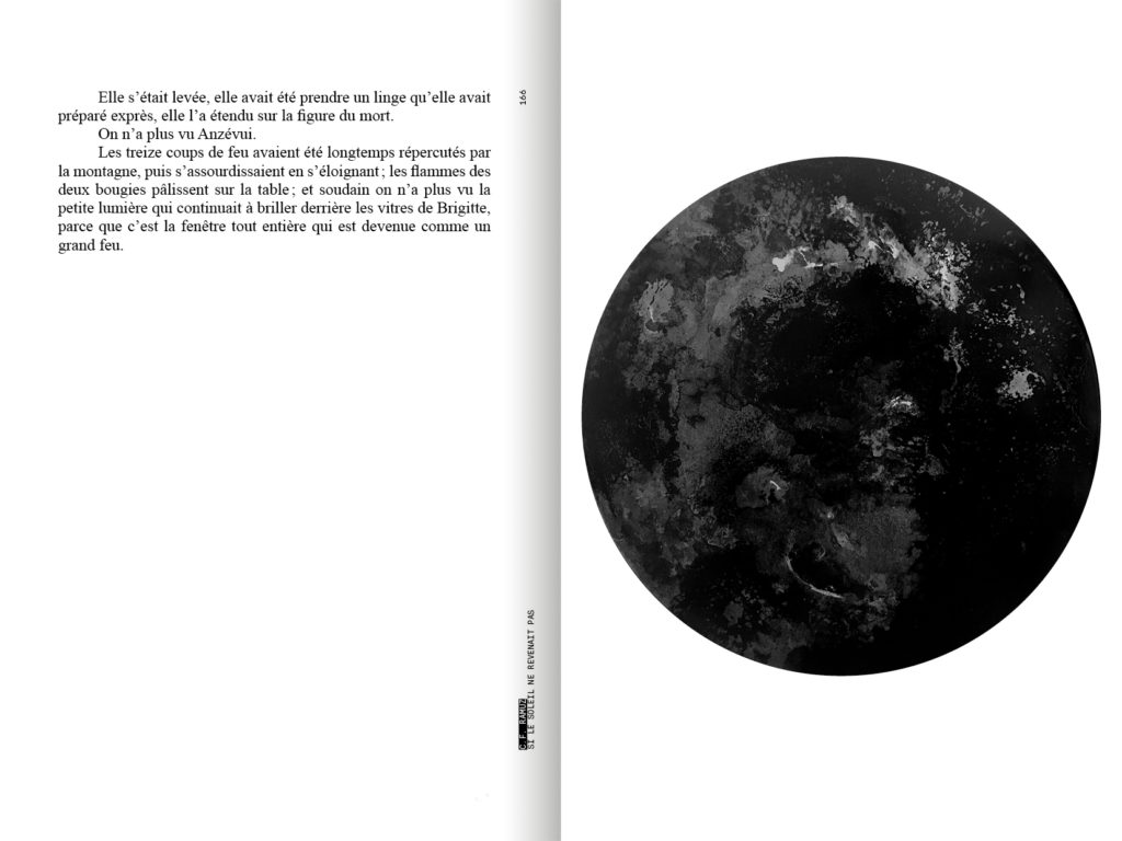 Les deux illustrations sont tirées de la série Black Sun de l’artiste-plasticienne Sandrine Pelletier, créée en 125 exemplaires différents pour la Société suisse de gravure (SSG). L’artiste-plasticienne lausannoise s’est inspirée de l’iconographie du disque solaire, objet symbolique dans la mythologie égyptienne. « Al kem » – « la terre noire de Dieu » donnera l’étymologie d’alchimie, procédé qui sera utilisé pour obtenir le contraste dans la matière de ces soleils de cuivre et laiton. Black Sun représente la fin d’un sicle et la naissance d’un autre. De la même manière que le soleil se couche et se lève chaque jour.