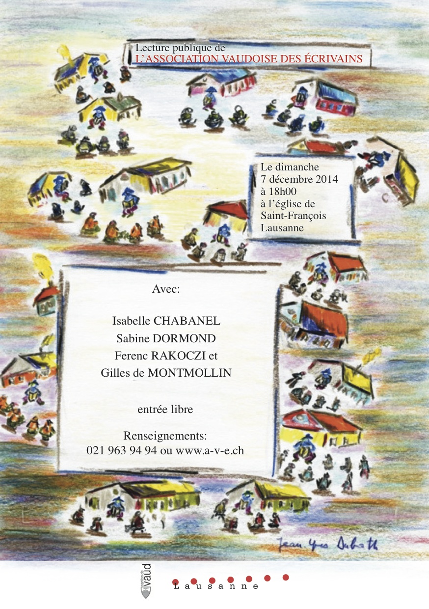 Isabelle Chabanel, auteure de Des étoiles dans la main, participe à une lecture publique, organisée par l’Association vaudoise des écrivains, le dimanche 7 décembre 2014 à 18h à l’église Saint-François à Lausanne.