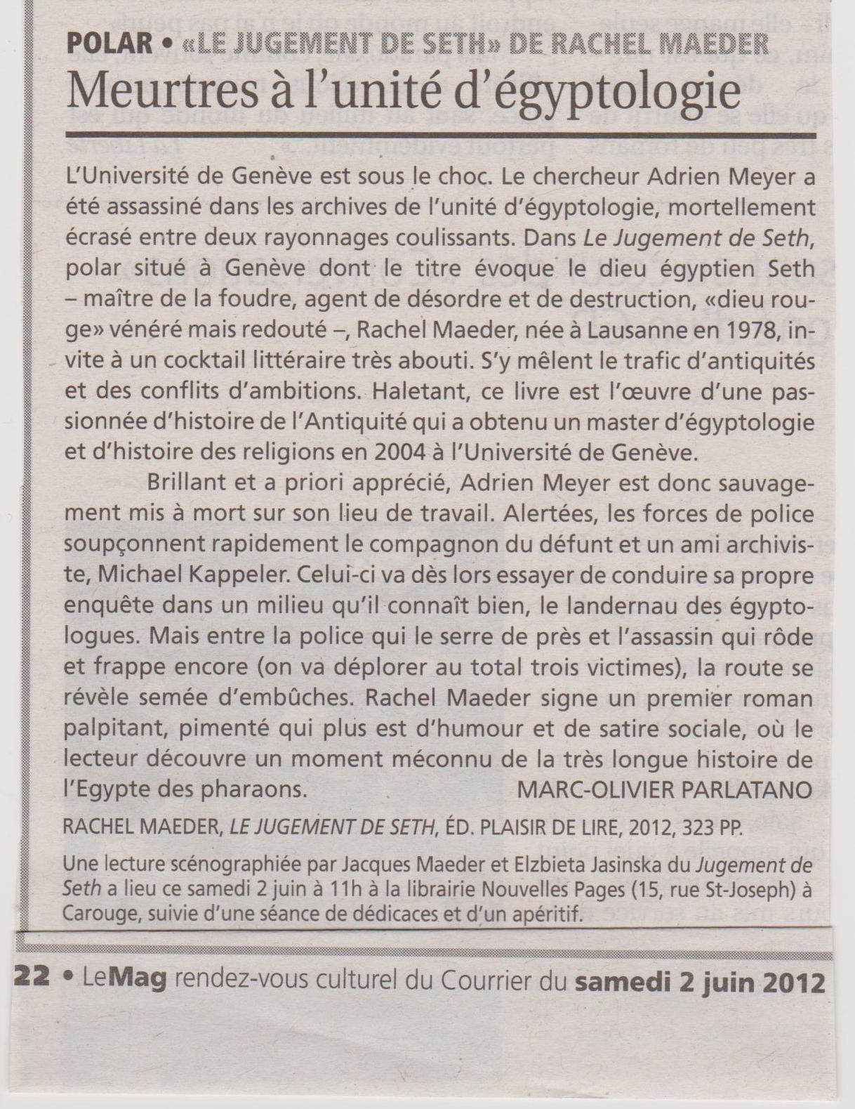 • Le Courrier, 2 juin 2012: