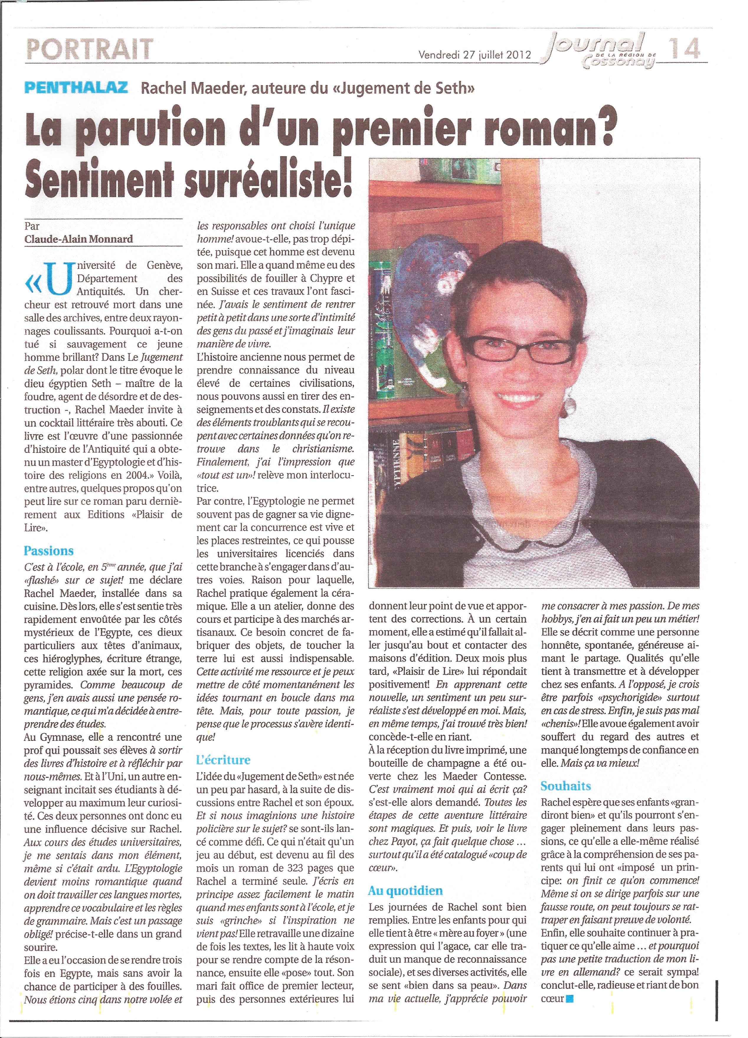 • Journal de Cossonay, 27 juillet 2012, portrait de Rachel Maeder: