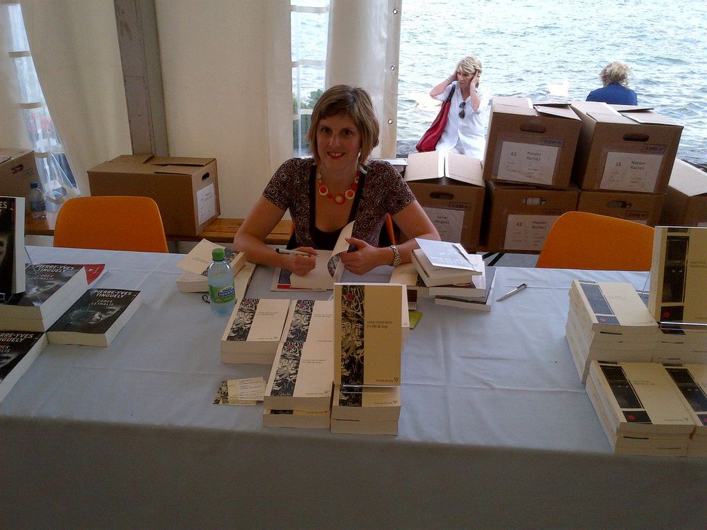 Isabelle Aeschlimann en pleine séance de dédicaces.