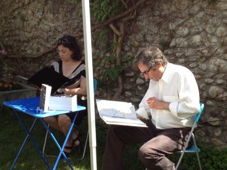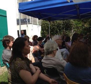Lecture scénographiée du Jugement de Seth à Genève, en présence de son auteure Rachel Maeder, dans le jardin de la librairie nouvelles pages.
