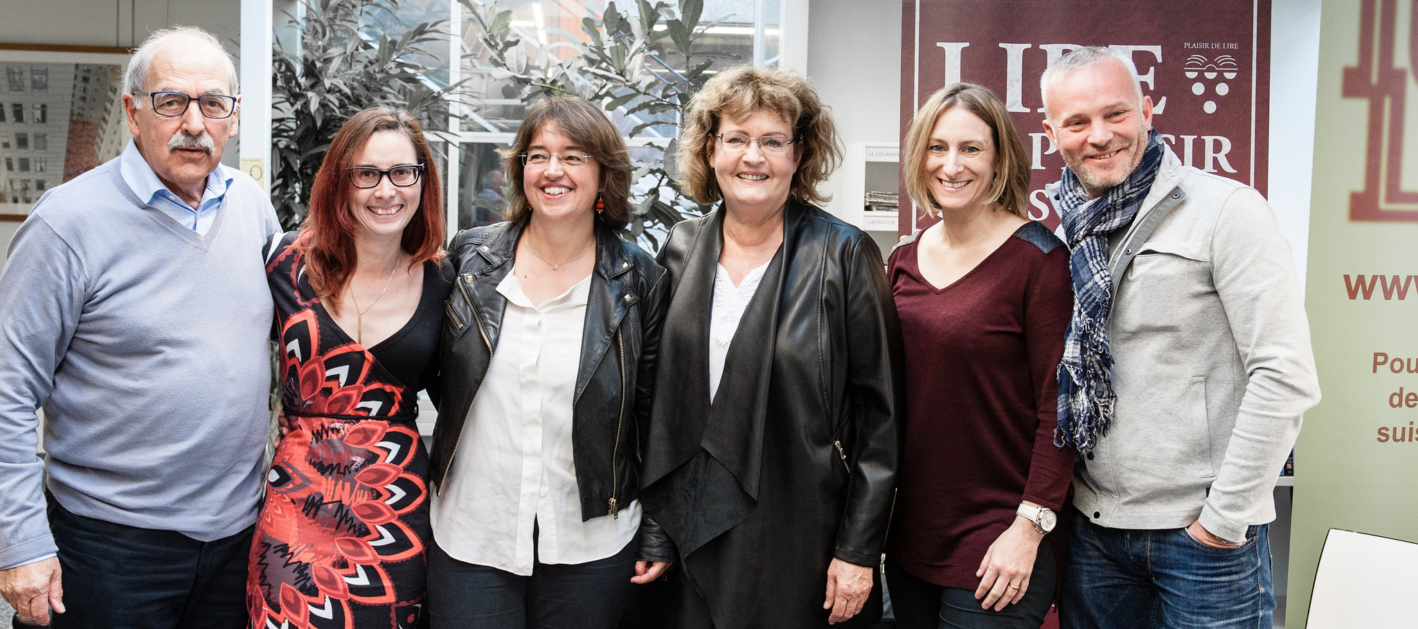 C’était un bel événement animé par Pierre Fankhauser et présentée par Isabelle Falconnier qui a réuni, le samedi 14 novembre à la bibliothèque Chauderon, les auteurs Abigail Seran, Marc Voltenauer, Annik Mahaim, Rachel Zufferey et Pierre de Grandi autour de leurs derniers ouvrages, avec lectures, interviews et devinettes au programme… Voici les photos de l’événement, par le photographe Gustave Deghilage.