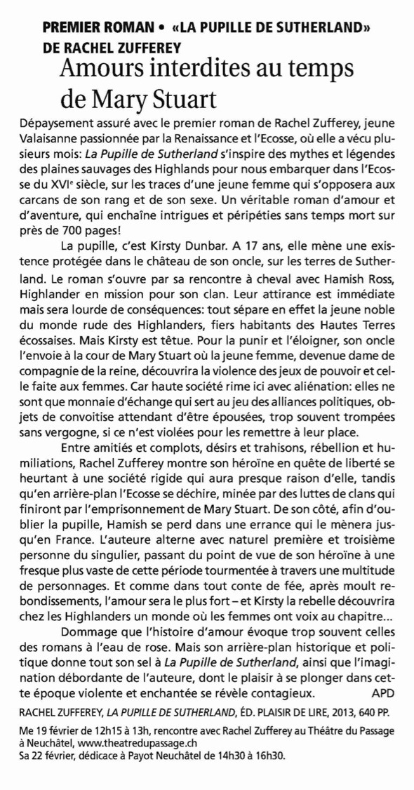 "La Pupille de Sutherland" dans Le Nouvelliste du 25 février 2014.