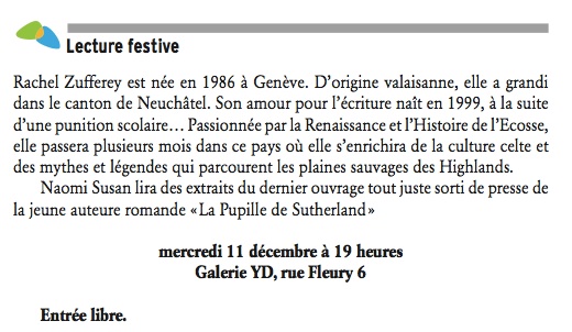 "La Pupille de Sutherland" dans Vivre ma ville du 18 décembre 2013.