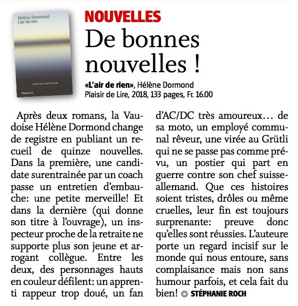 Le regard acéré d’Hélène Dormond invite le lecteur, à travers ses récits espiègles, à questionner les comportements et représentations des personnages de chacun de ces courts textes au gré de délicieuses boutades qui nous emmènent loin des sentiers battus.