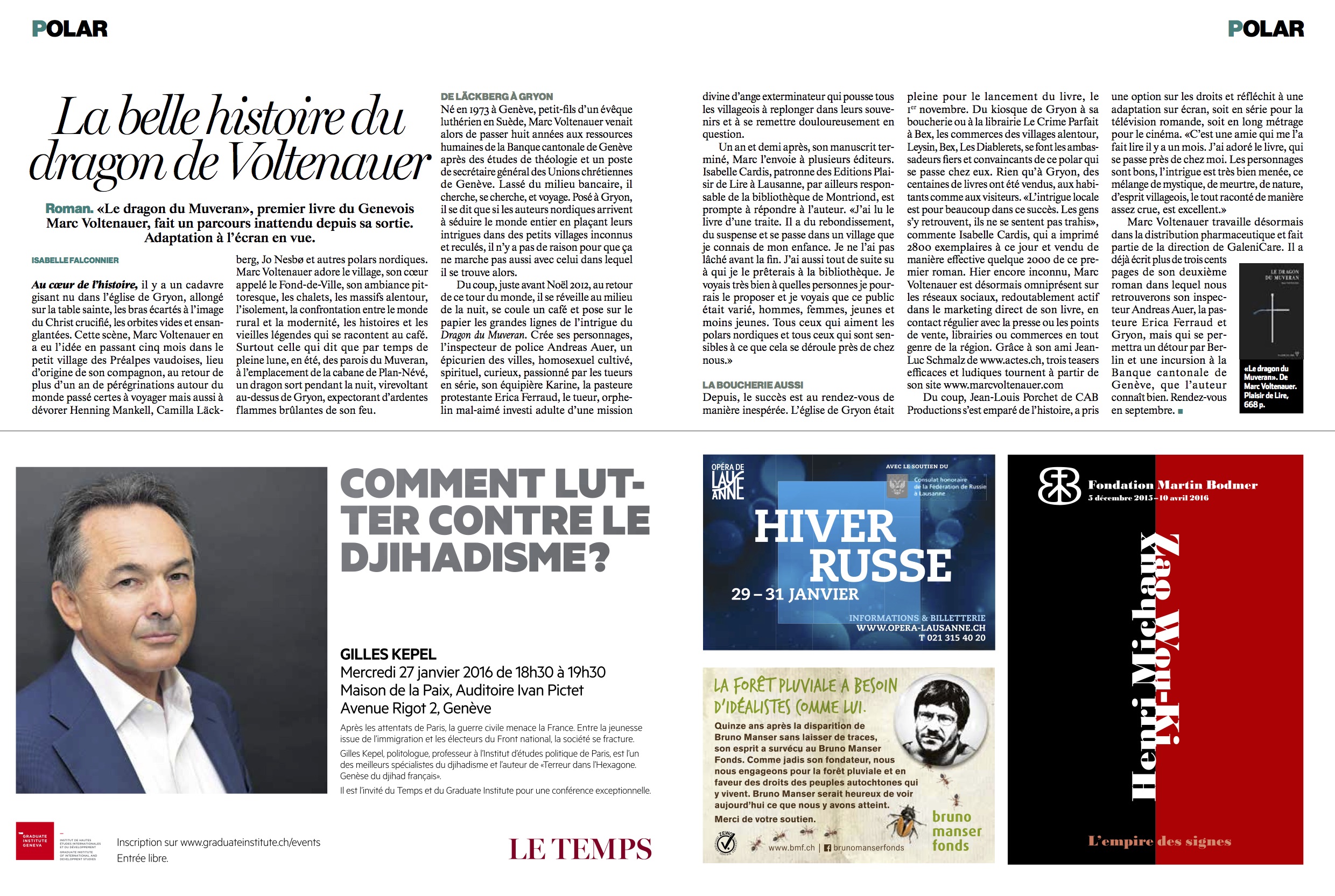 - La Tribune de Genève et le 24 Heures, 30 novembre 2015