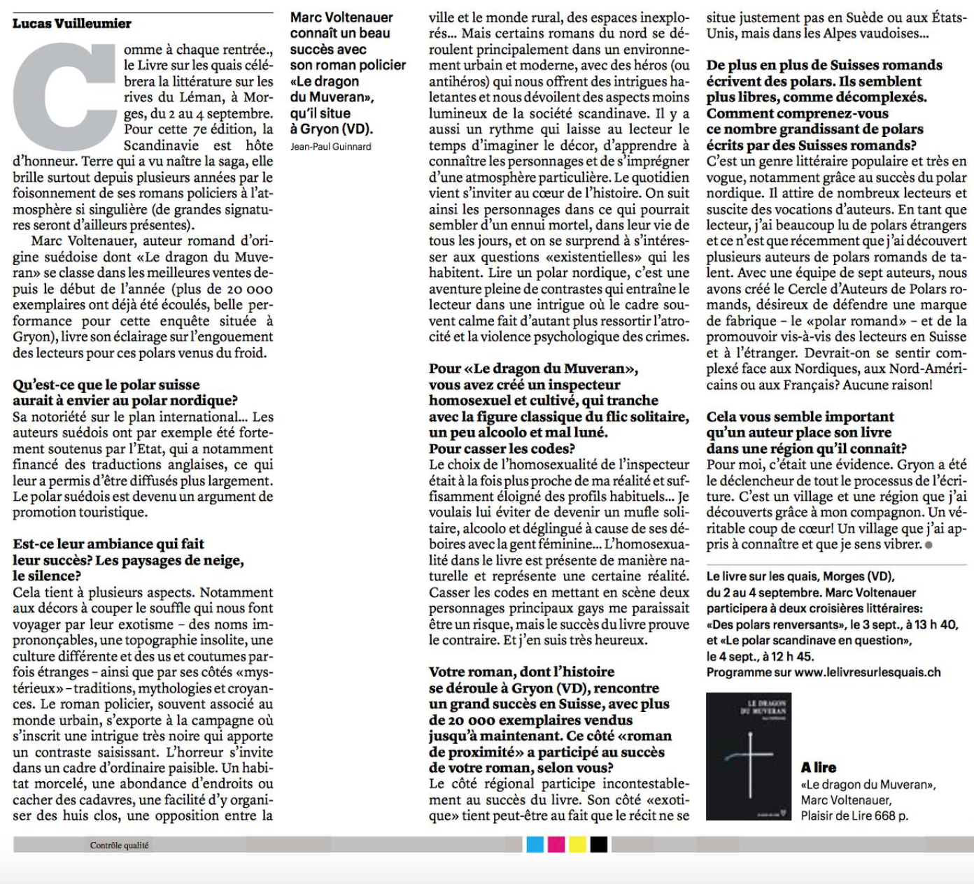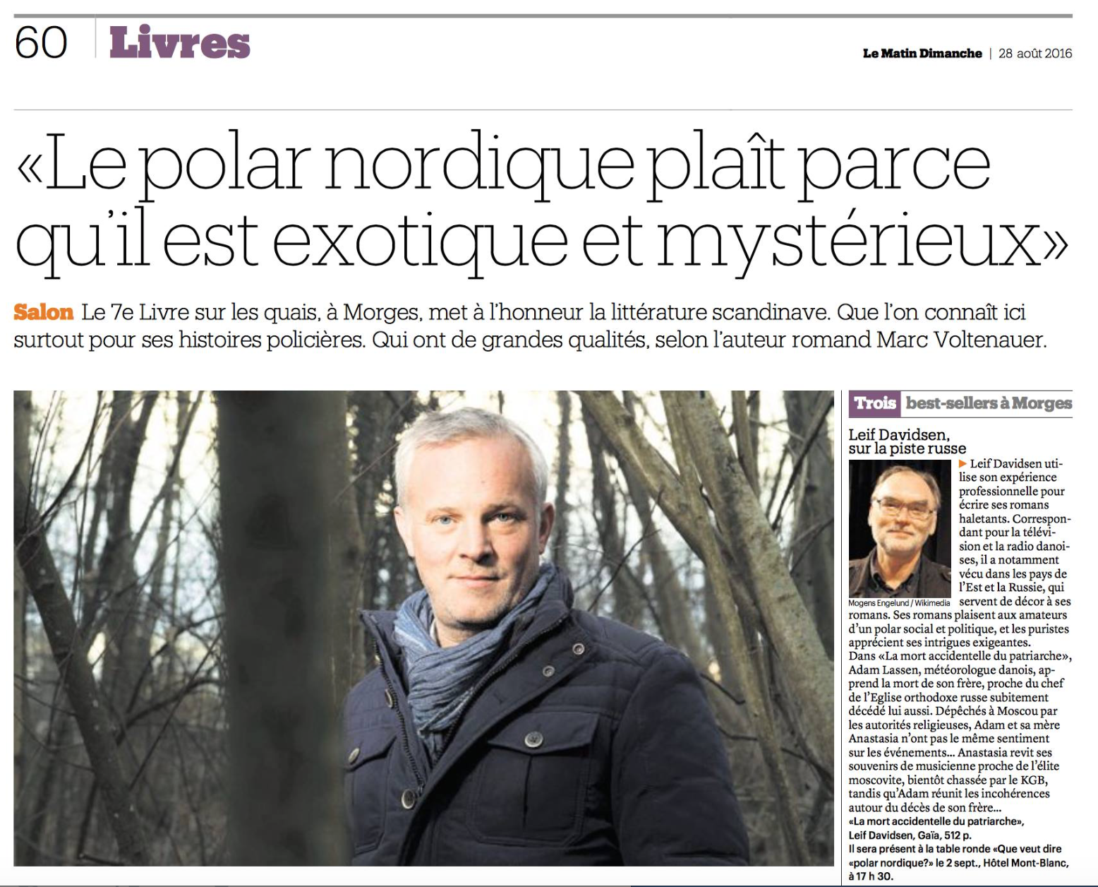 - La Matin Dimanche, 28 août 2016: