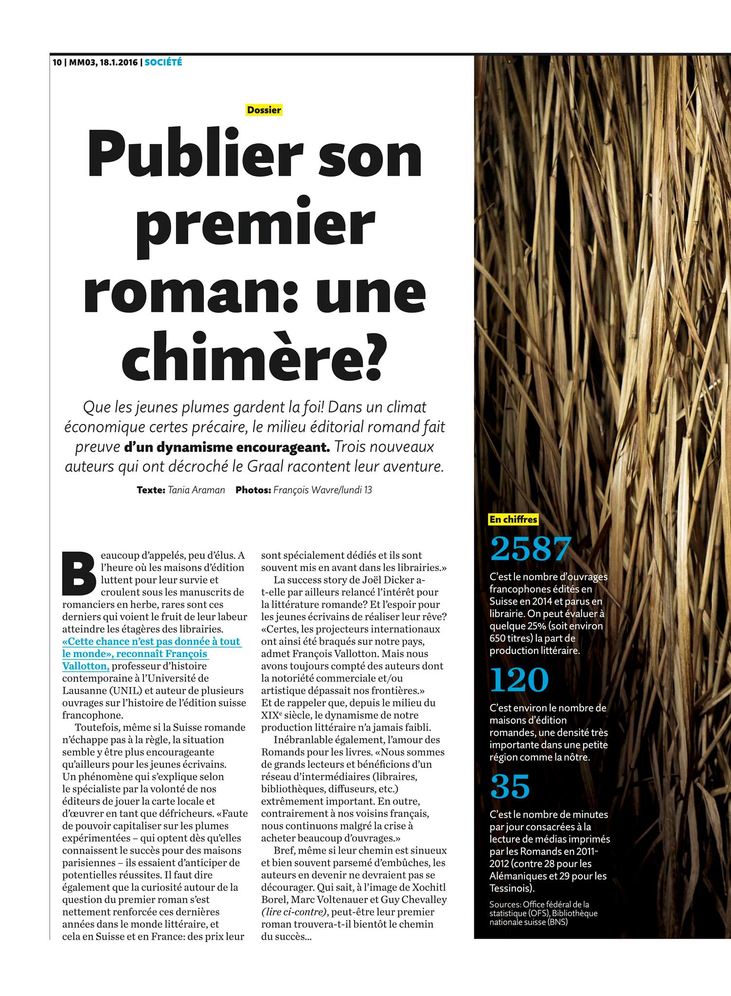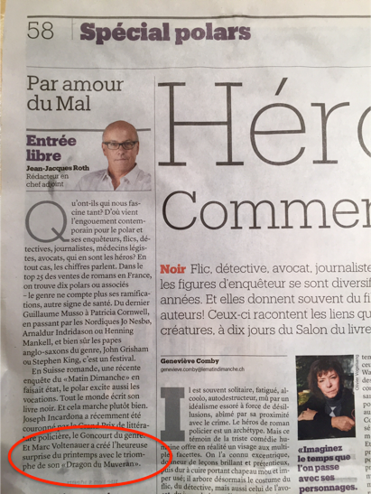 - Le Matin Dimanche, 13 mars 2016: