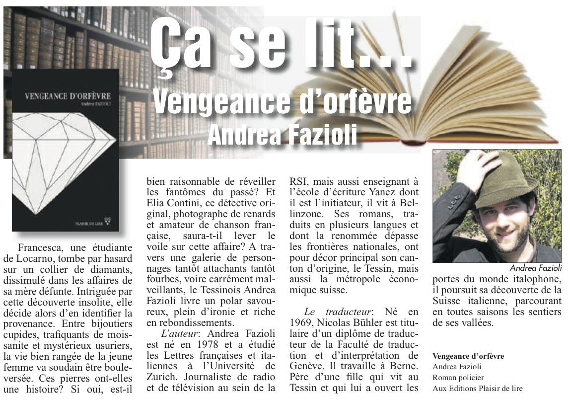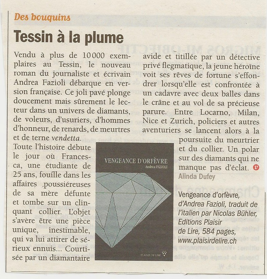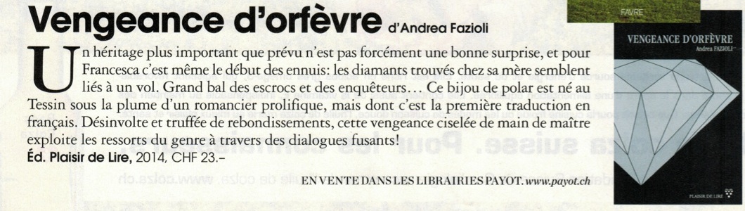 "Vengeance d'orfèvre" dans Le Courrier du 12 juin 2014.