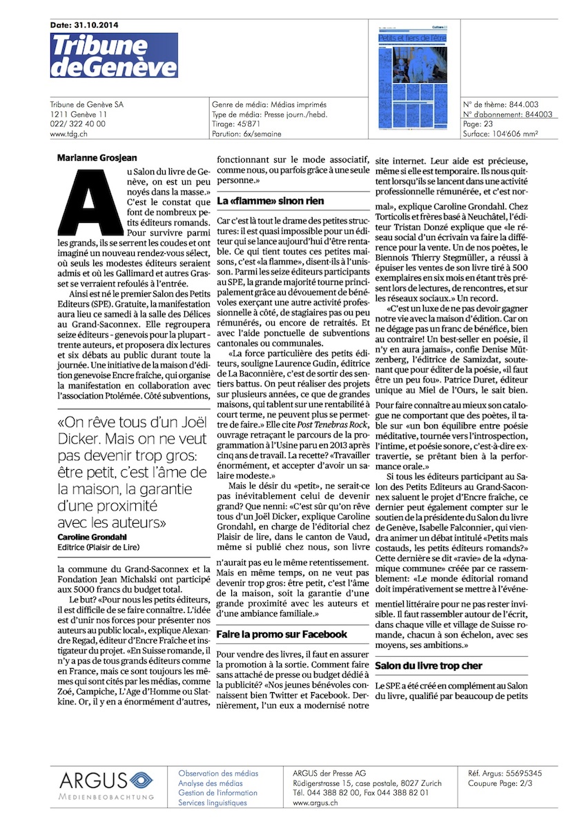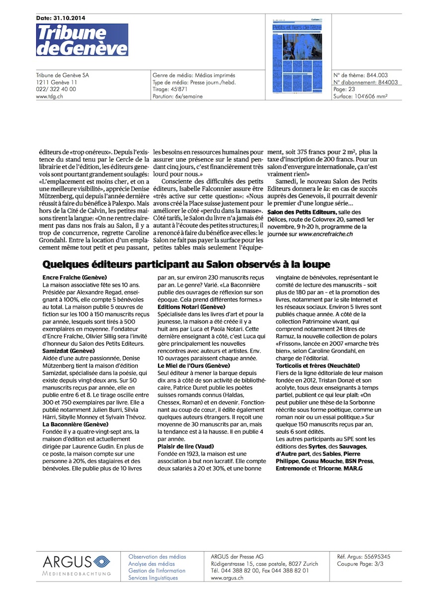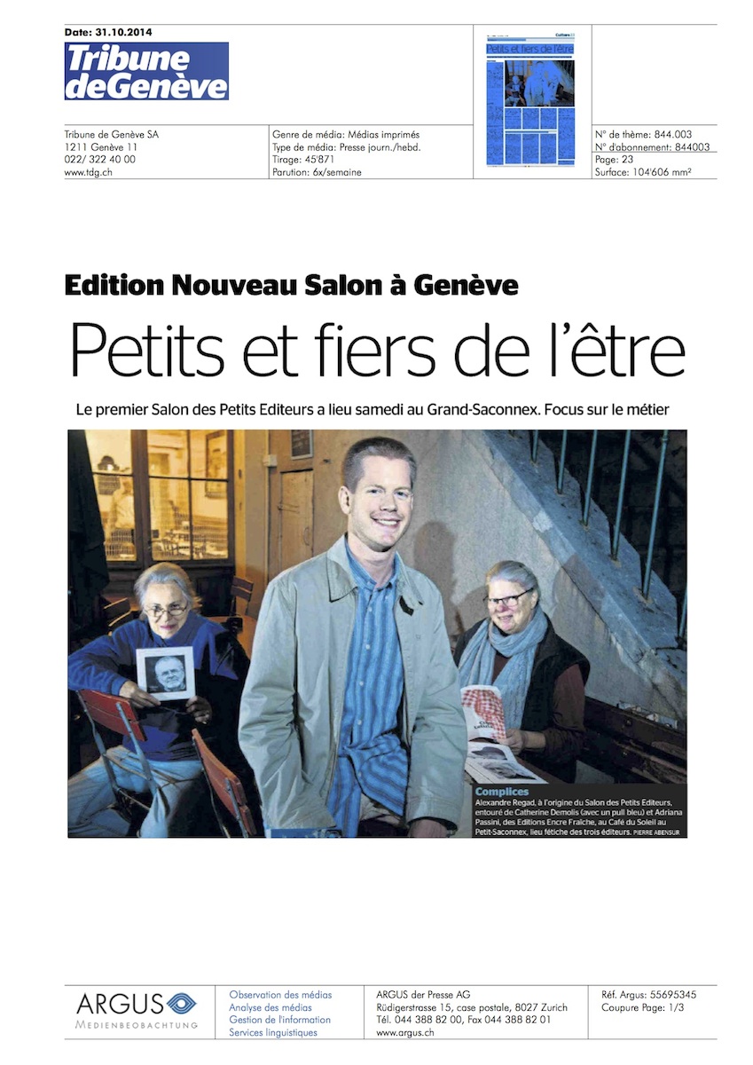 Cliquez sur les images pour lire cet article paru dans La Tribune de Genève le 31 octobre 2014.