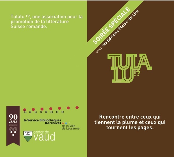 Le flyer de la soirée Tulalu!? et Plaisir de Lire.Le mercredi 9 avril 2014, l’association Tulalu!? a organisé dès 19h30 une soirée festive, ludique et impertinente autour du 90e anniversaire des Editions Plaisir de Lire.
